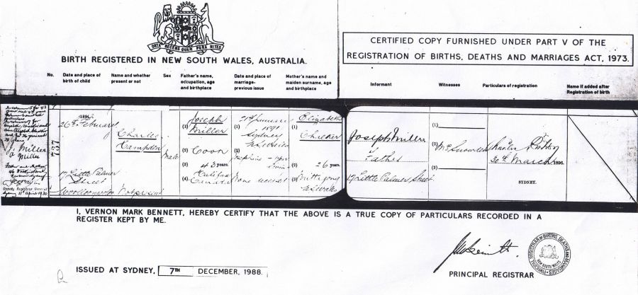 Joseph was born on 10 May 1905, also at 601 George Street, Sydney.